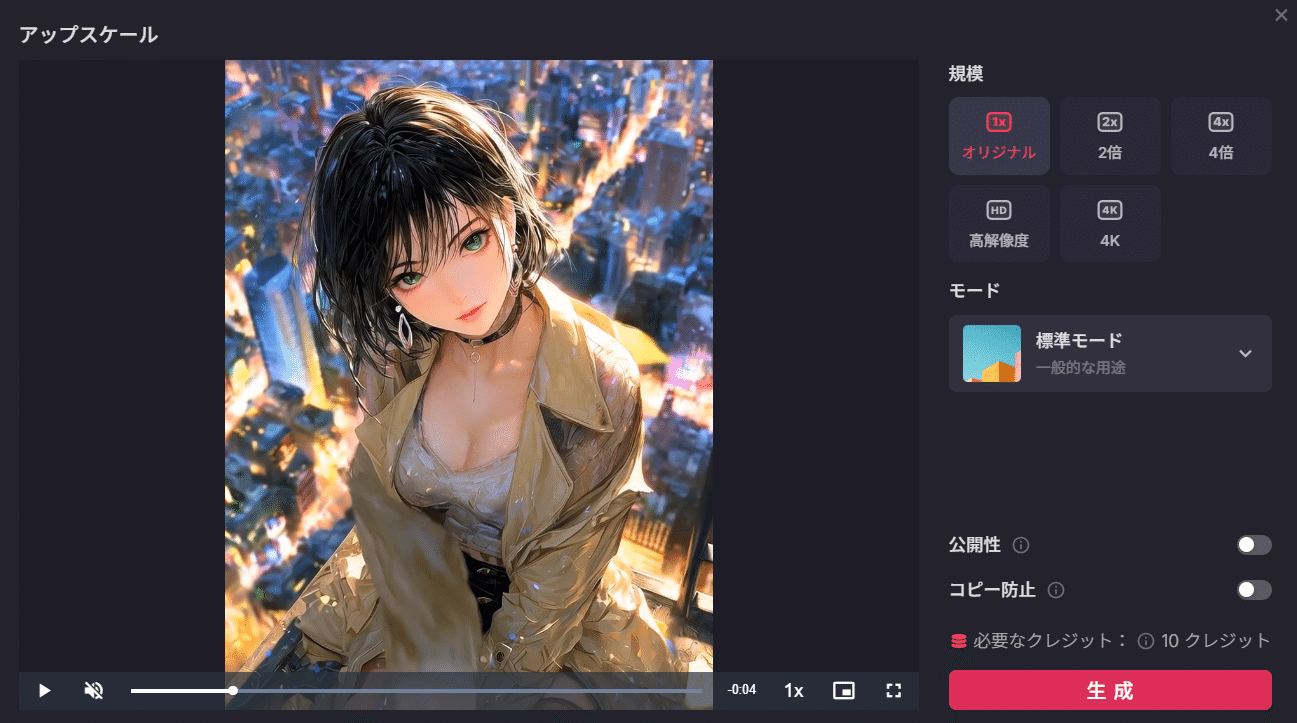 また、動画時間の延長だったり、アップスケーラーといった、生成後の編集機能もPollo AIにはありますので、後処理含めて完結できる点は便利かなと思います。
